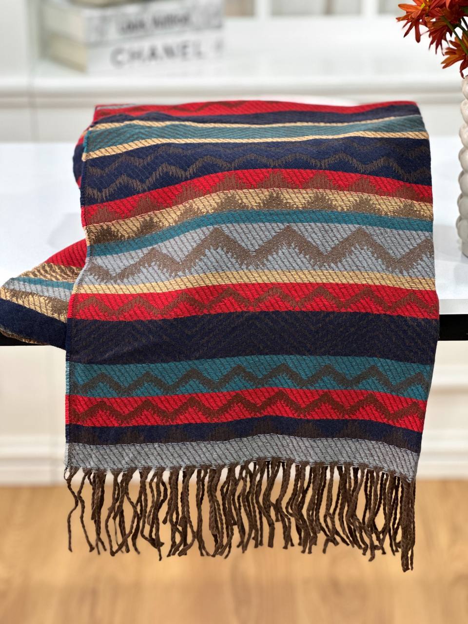 شال موهر ریشه دار راه راه اورجینال